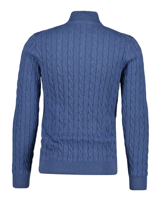 Gant Cotton Cable Knit Half-Zip Sweater - Khaki Green Melange