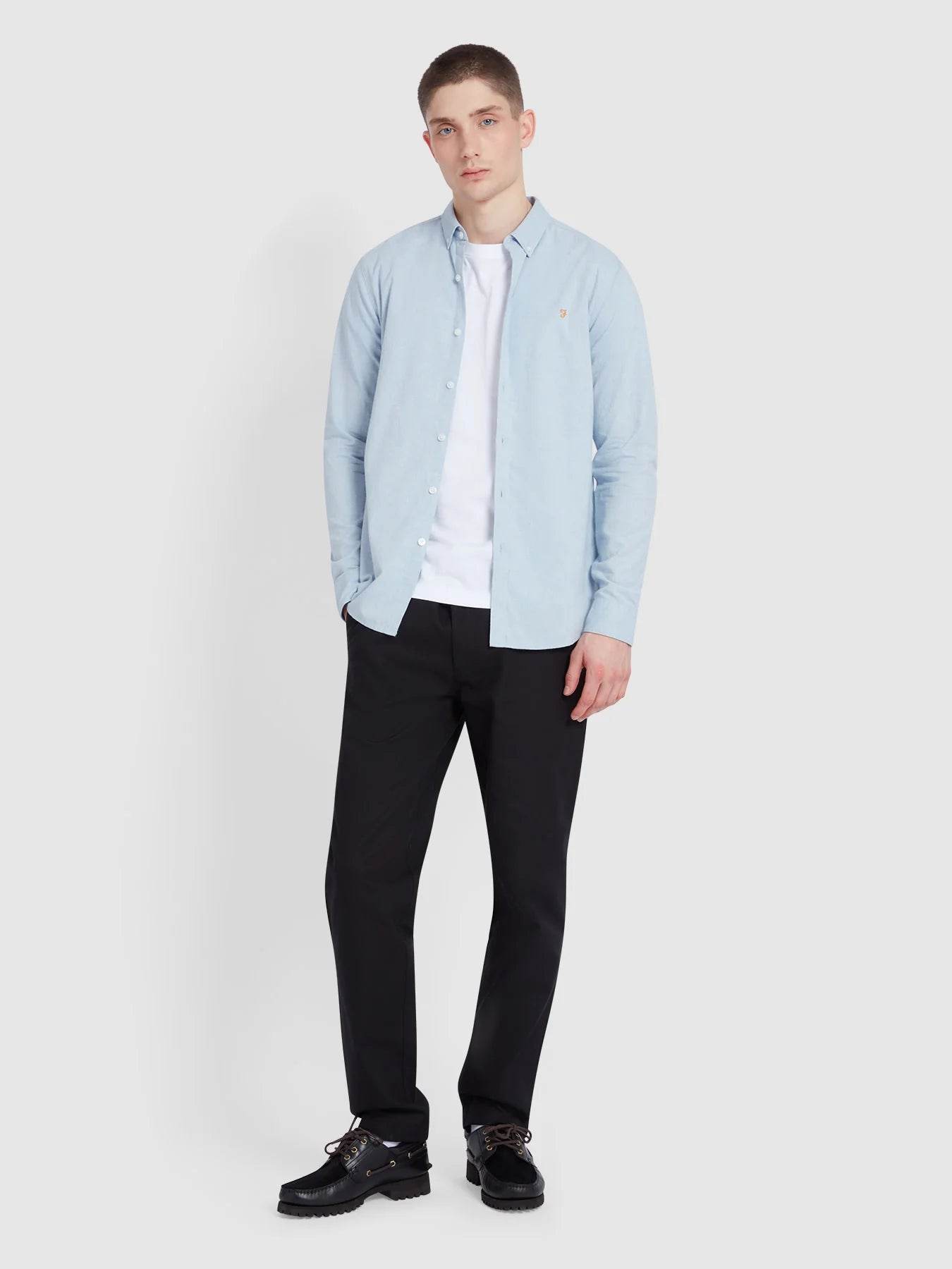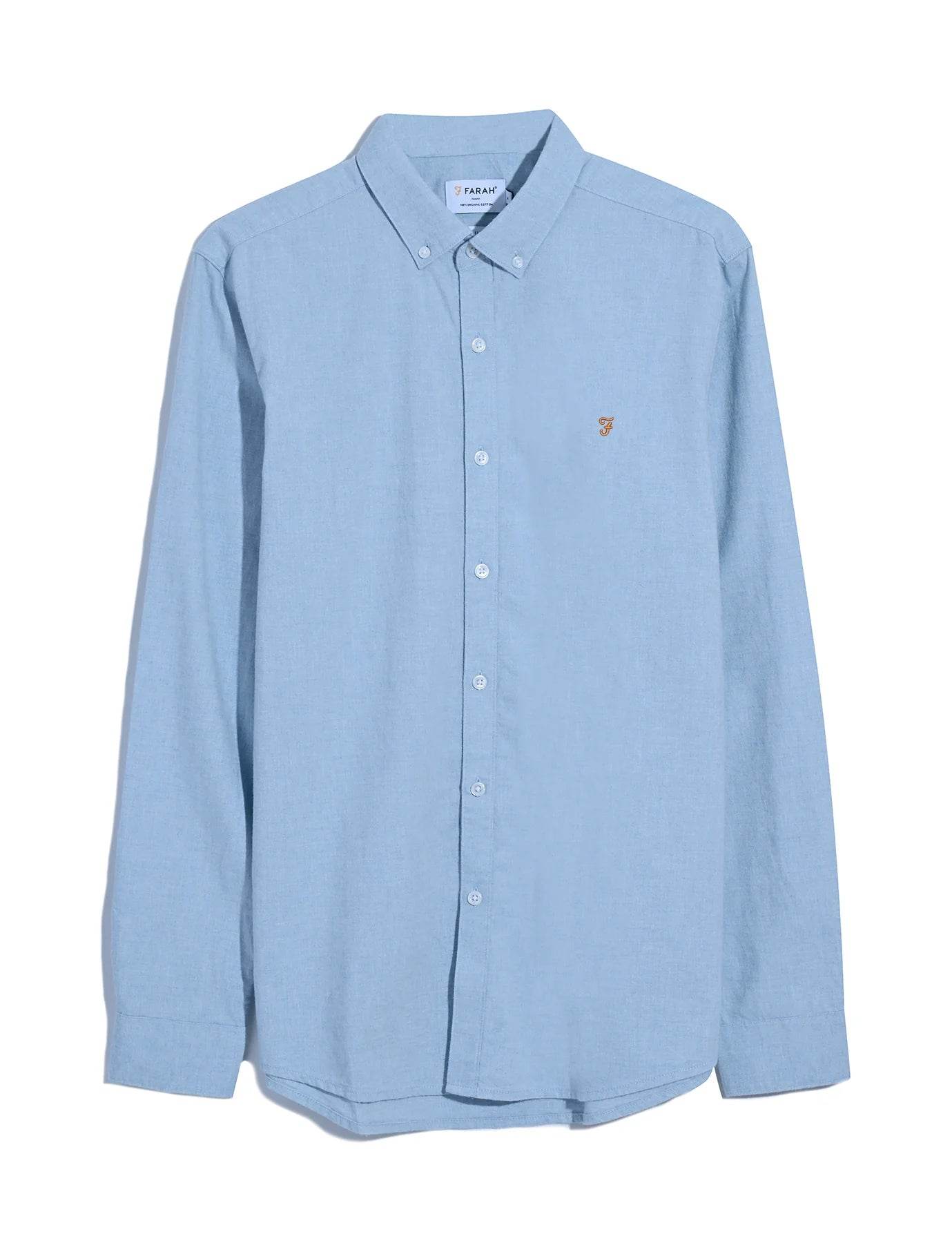 Farah Steen Slim Fit Brushed Organic Cotton Shirt - Powder Blue Marl