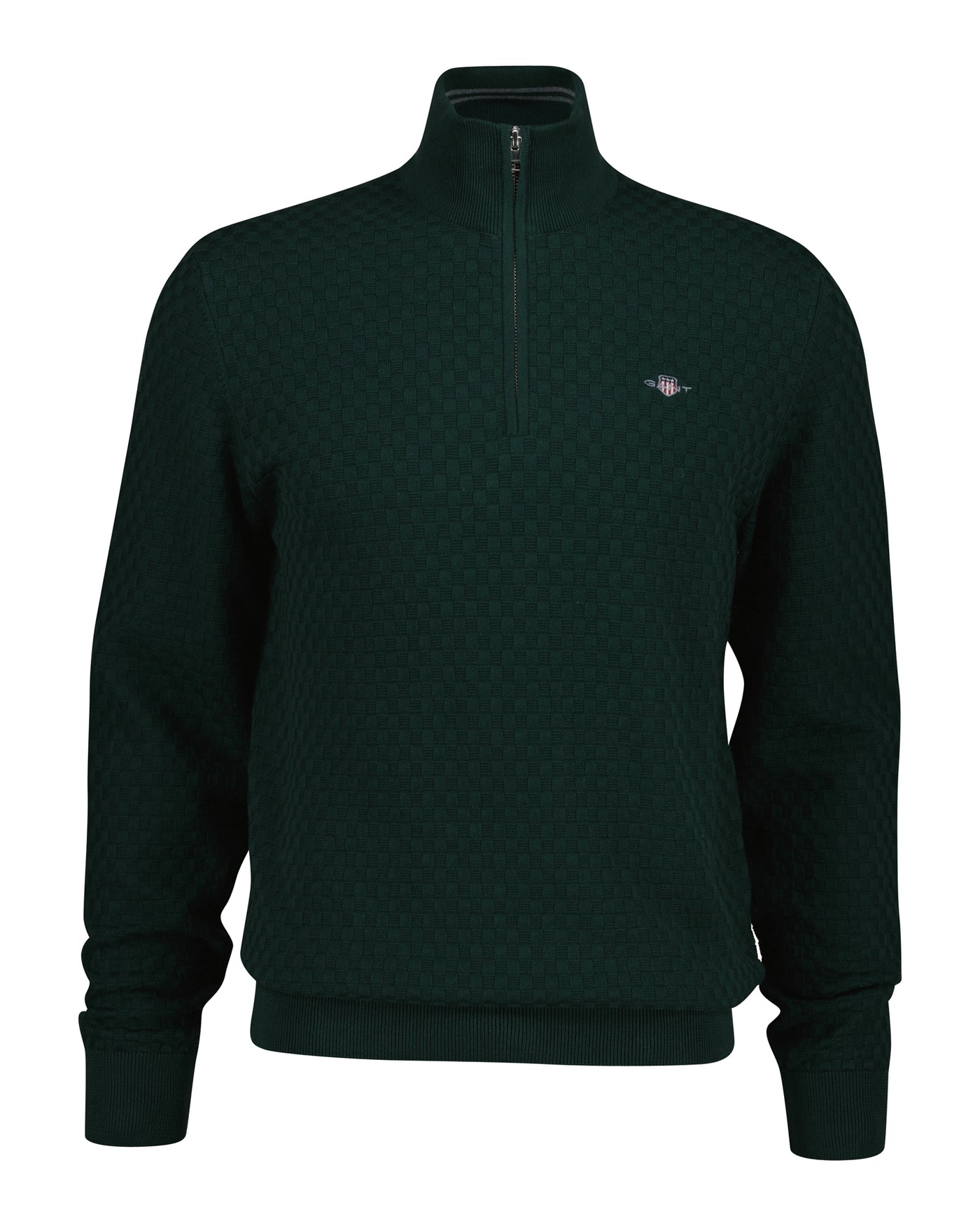 The GANT Cotton Textured ¼ Zip Jumper combines comfort and style with its high-quality organic cotton fabric. Designed with a textured pattern and ribbed detailing at the cuffs, hem, and collar, it ensures a snug fit and long-lasting wear. The quarter zip at the collar adds versatility, allowing you to adjust your look and comfort throughout the day. Featuring the iconic GANT shield logo embroidered on the chest, this jumper reflects a classic, preppy style perfect for layering or wearing alone. Its regular fit makes it suitable for both smart-casual occasions and relaxed settings, offering a reliable and polished addition to your wardrobe. Explore the full GANT collection for more timeless pieces.