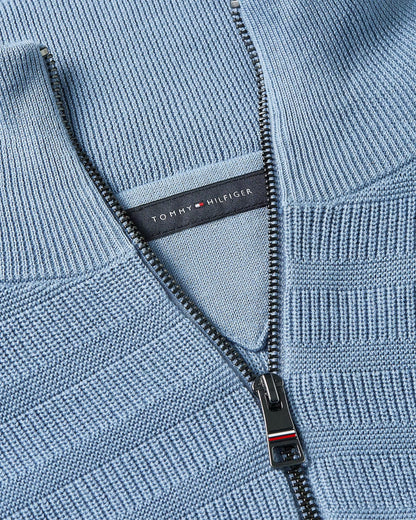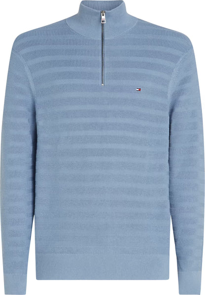 Tommy Hilfiger Stripe Structure Zip Mock - Brisk Blue