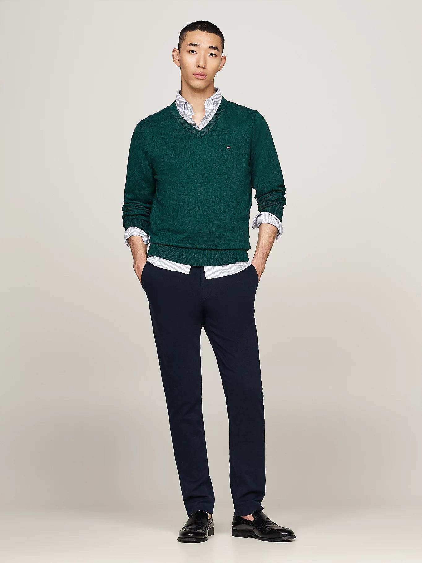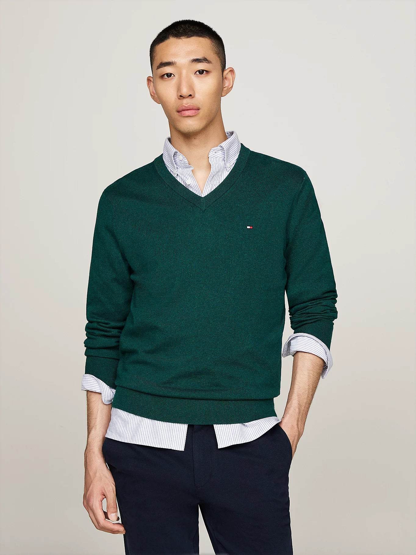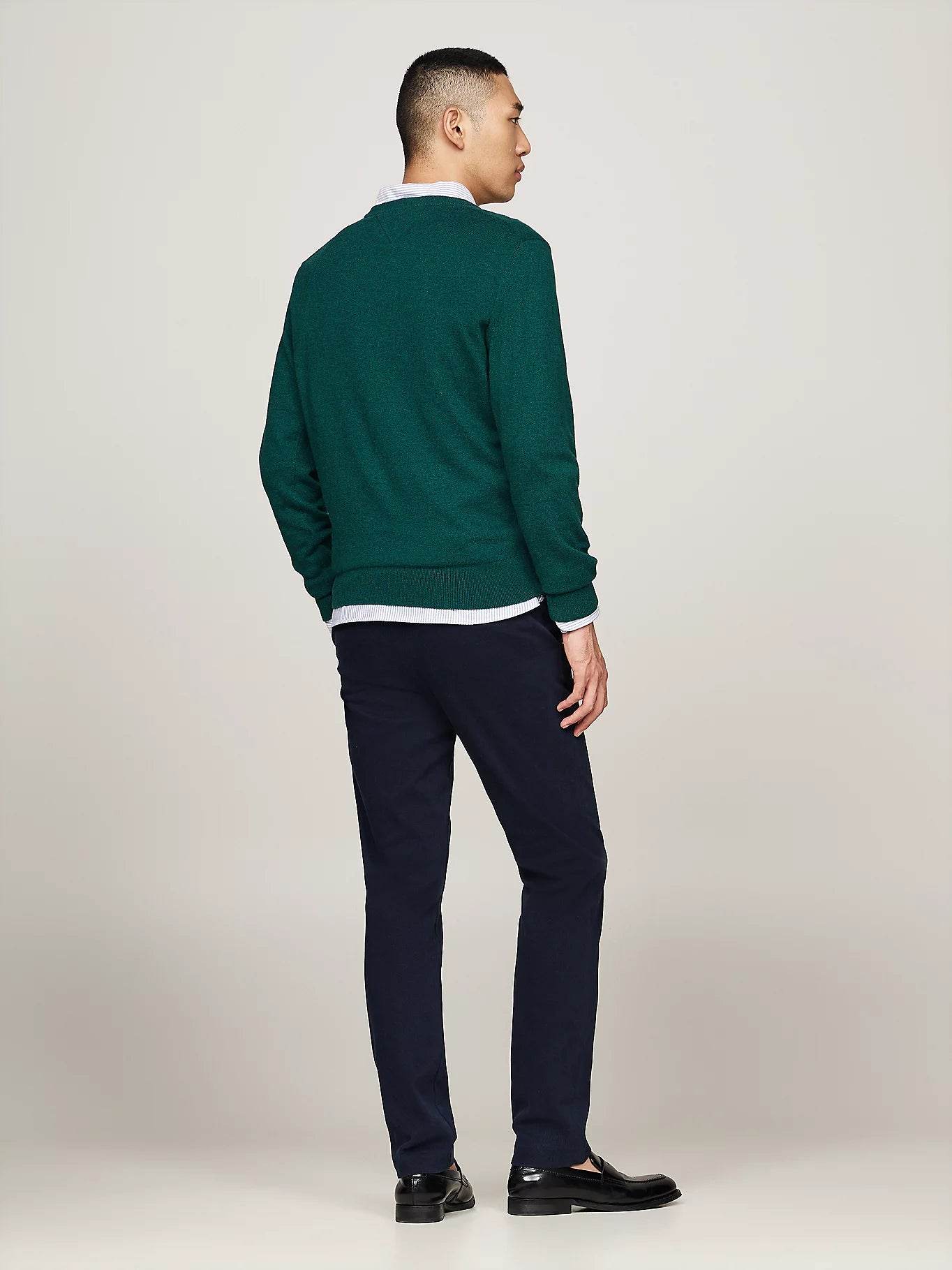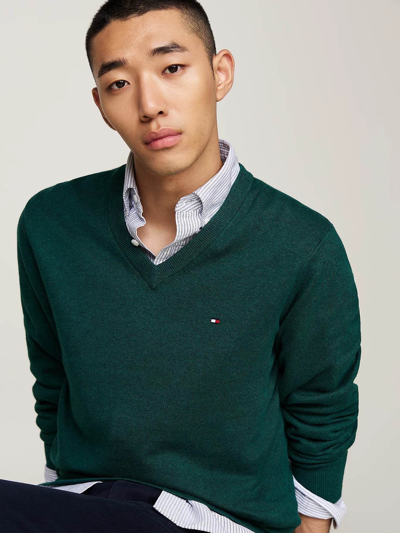 Tommy Hilfiger V-Neck Jumper with Cashmere - Ornamental Green Heather